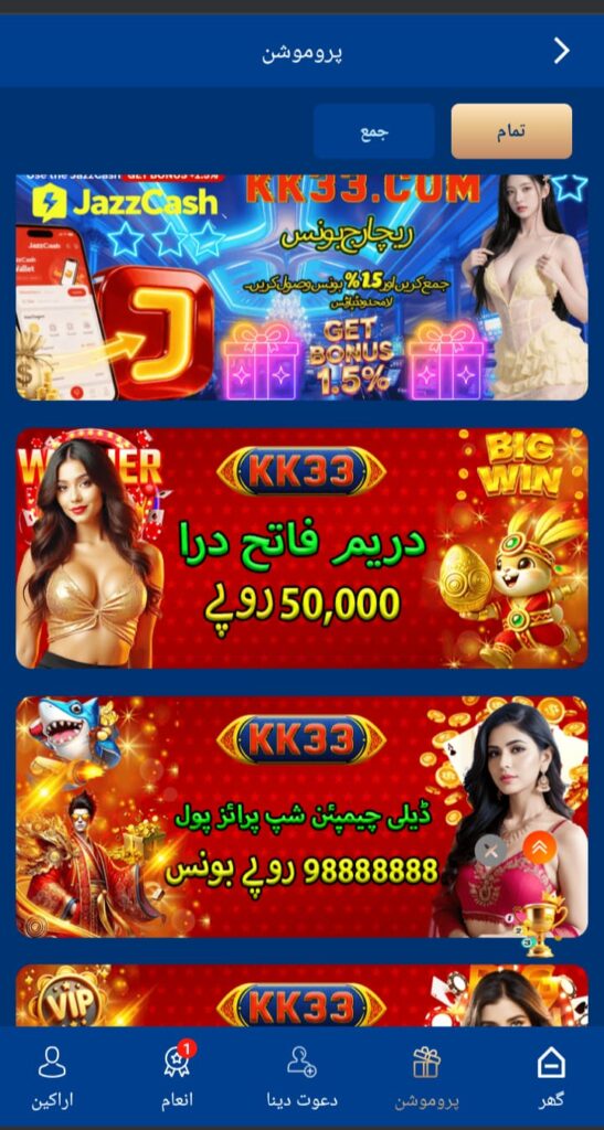 Are you active with online games? If you are than download KK33 Game. Change your daily routine and enroll in virtual gaming for fun and interactive activities. Claim referral bonuses and rewards. After successfully downloading this app you have to create an account and continue playing more than 150 games. Open dashboard and check all arranged items and offers for further procedure.