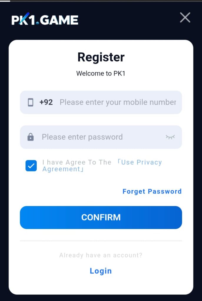 Register with PK1 Game